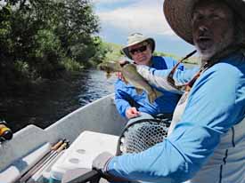 The Fireworks that started last week have continued this week; Golden Stones, Salmonflies, Yellow Sallies, Caddis and PMDs are here, and the fish are chowing down! Early Morning and late afternoon/evening have been the most consistent Dry Fly action with off and on action mid-day. Dry Flies fished in tandem with a dropper Dry or a dropper Nymph has been the ticket. And for those of you who love fishing those Nymphs, never fear as the Nymphing in the middle of the river has been on fire. Flows starting this week at Kirby were 1,330cfs and dropping by the 10th to 1,250cfs, at Cameron 1,970cfs the beginning of the week and dropping to 1,660cfs by the 10th. We have had some beautiful weather this week hanging in the high 70’s to low 80’s with some scattered thunderstorms in the afternoon. Looking to the next week we will most likely see the continuation of amazing Dry Fly fishing and big smiles from happy fisherman! In closing to truly show you the proof of the week, just check out those smiles!
