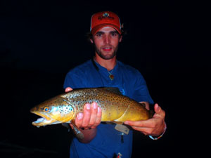 I went out yesterday from windy to ruby on a nice slow float from 10 to 5:30. Early on was great, I stopped at all the buckets and took my time wade fishin’. Nice fat browns on the black girdle bug in the size 4 were ever so sneakily taken from behind the buckets. The big stonefly nymphs were really doing good for me. I went through the small bead head rotation also, but only got little dinks out of that, so I stayed with the big setup and continued down to Ruby feedin em what they wanted. Down by the ruby rocks I threw the dries at em again but they did not want mine I guess 🙂 A few rises there with a miss and some expurlatives, but no fish out there this time. I parked the boat at ruby and waited there for John and Daniel to get off work so we could continue down to Mac for the evening. Dries. Holy Cow!