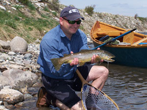 Our friend Dan, of Rocky Mountain Embroidery, who does our Beartooth Flyfishing embroidery had a good day with a very nice catch shown in his photo with his special boat, he made himself. Nice fish Dan!